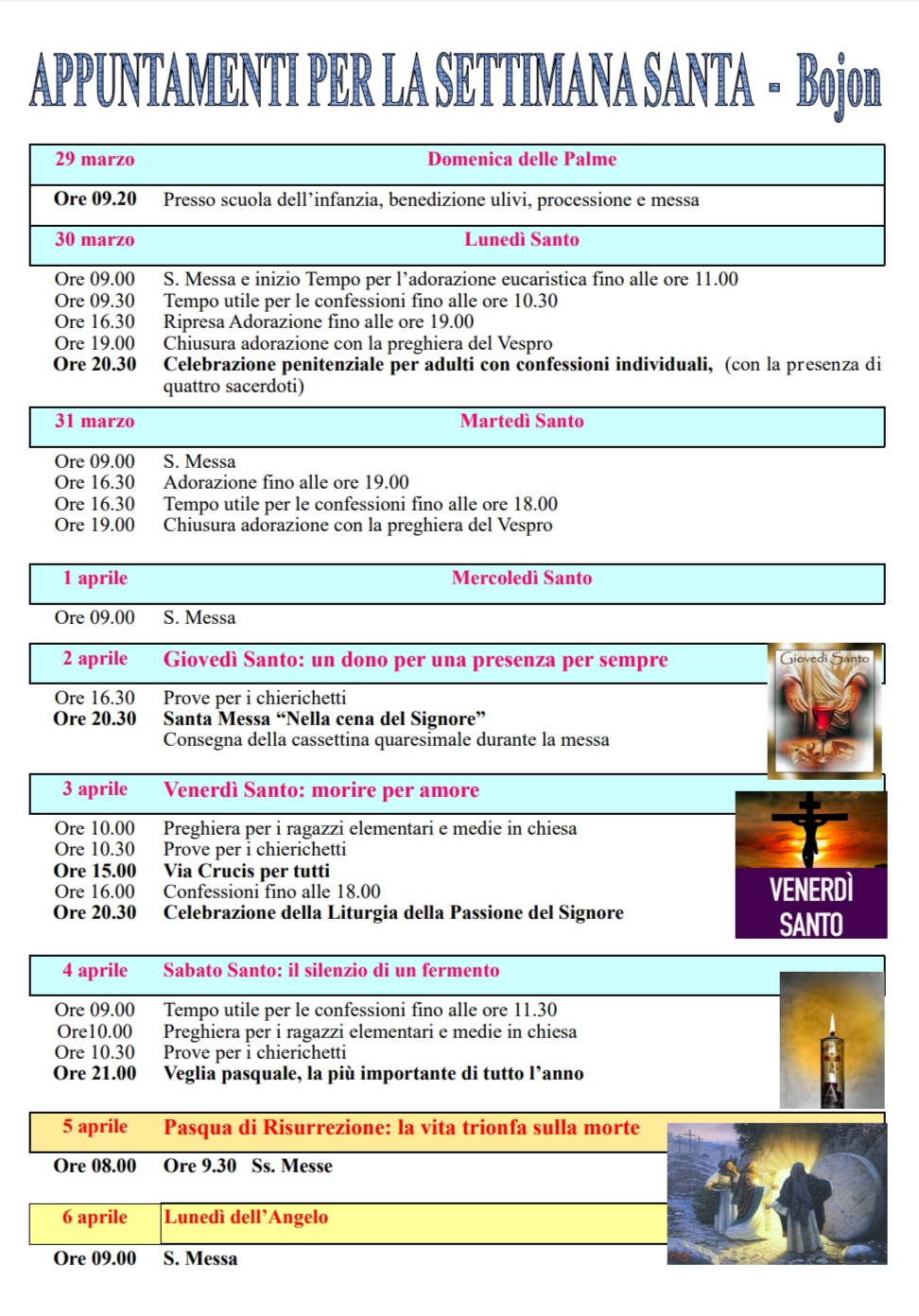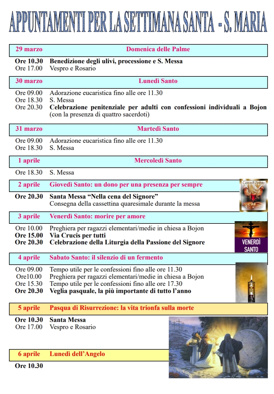 Lunedì (in chiesa), Martedì, Mercoledì: 9.00